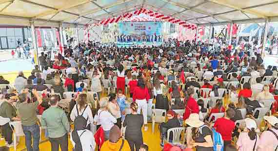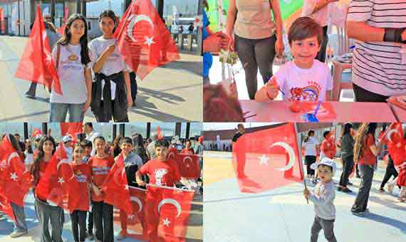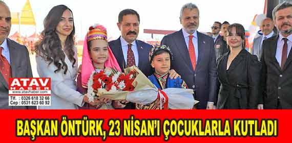 BAŞKAN ÖNTÜRK, 23 NİSAN’I ÇOCUKLARLA KUTLADIBAŞKAN ÖNTÜRK, 23 NİSAN’I ÇOCUKLARLA KUTLADI Hatay Büyükşehir Belediyesi (HBB) Başkanı Mehmet Öntürk, Arsuz EXPO Alanı’nda düzenlenen 23 Nisan Törenine katıldı. 23 Nisan Ulusal Egemenlik ve Çocuk Bayramı nedeniyle gerçekleştirilen törene Başkan Öntürk’ün yanı sıra Hatay Valisi Mustafa Masatlı, Arsuz Belediye Başkanı Sami Üstün, Hatay Milli Eğitim Müdürü Harun Tüysüz, Hatay Mustafa Kemal Üniversitesi Rektörü (HMKÜ) Veysel Eren ve il protokolü katıldı. Çocukların birbirinden anlamlı ve renkli gösterilerle süslediği törende Türkiye Büyük Millet Meclisi’nin açılışında emeği bulunan Mustafa Kemal Atatürk ve silah arkadaşları anıldı. Kutlama alanına gelen çocuklar ve ailelerine Türk Bayrağı dağıtılırken HBB animasyon ekibinin kukla gösterisi izleyenlere keyifli anlar yaşattı. Tören alanında oluşturulan şişme oyun alanında minikler doyasıya eğlendi ve günün en anlamlı etkinliği olan Türk Bayrağı uçurtması çocukların eliyle gökyüzüne yükseldi.
