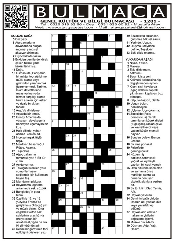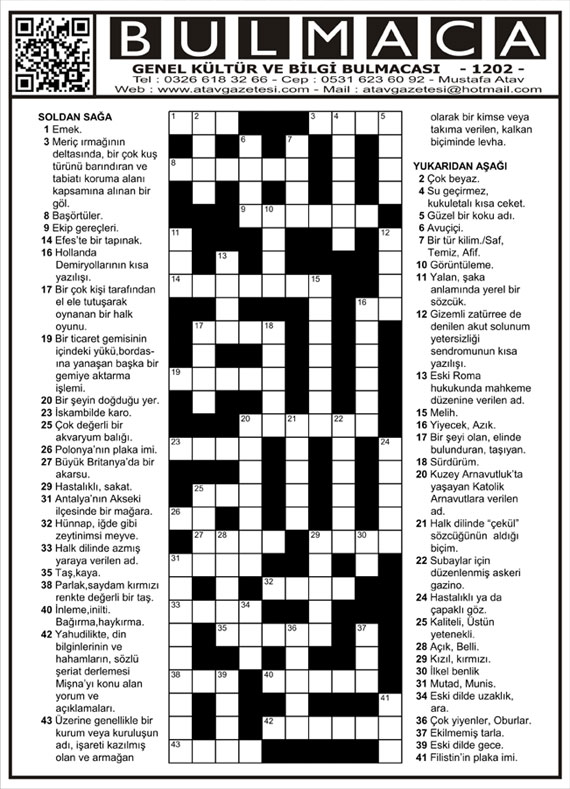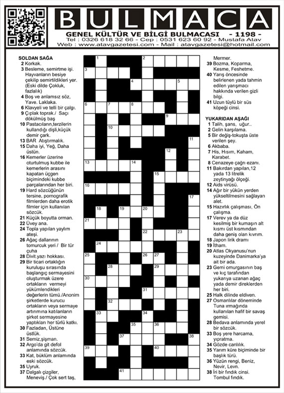 BULMACA KÖŞESİ (Online Genel Kültür ve Bilgi Bulmacaları)