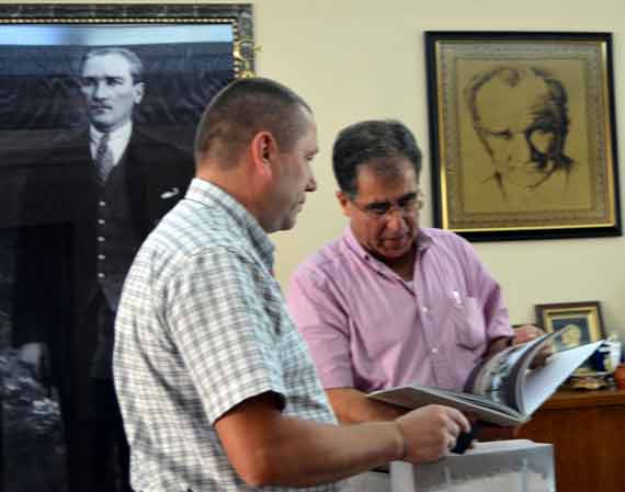 Comenius Proje ortağı olan Türk ve Litvanyalı okulların öğretmen ve müdürleri Belediye Başkanı Dr.Yusuf H.Civelek'i ziyaret etti------------------------------------------------ İskenderun Suçıkağı Paşa Karaca Ortaokulu ve Litvanya Raseiniu r. Girkalnio Ortaokulu'un proje ortağı olduğu "Türk ve Litvanyalı Öğrenciler Kültürel Halı Dokuyor" isimli Hayat Boyu Öğrenme Comenius Projesi kapsamında, müdür ve öğretmenler Belediye Başkanı Dr.Yusuf H.Civelek'i ziyaret etti. Makamda gerçekleşen ziyarete, İskenderun Suçıkağı Paşa Karaca Ortaokulu Müdürü Aytaç Yaman, projenin Türkiye Koordinatörlüğünü üstlenen İngilizce öğretmeni Hanefi Zobar, Litvanya'dan okul Müdürü Ramunas Bruzas ve öğretmen Loreta Vaicuilene katıldı. Proje ile ilgili bilgi veren Suçıkağı Paşa Karaca Ortaokulu İngilizce öğretmeni Hanefi Zobar, okul ortaklıkları projesinin ilk toplantısının 30 Eylül-4 Ekim 2013 tarihleri arasında İskenderun'da yapıldığını, projenin bu faaliyetine, Litvanya'daki ortak kurumdan bir öğretmen ve bir okul müdürünün katıldığını belirtti. Projenin Türkiye koordinatörü İngilizce öğretmeni Hanefi Zobar, çeşitli aktivite programıyla iki yıl sürecek projenin, öğrenciler ve kurumlar arasında işbirliği ile, öğrenciler arasında kültürel farkındalığı arttırmak ve iletişim yoluyla aslında farklı olduğu düşünülen kültürlerin, birbirlerine benzer yönlerini göstermeyi amaçladığını ifade etti. Proje kapsamında Litvanya'dan gelen konuklar, İskenderun Belediye Başkanı Dr.Yusuf H.Civelek'e Litvanya'yı tanıtan fotoğraf albümü verirken, Belediye Başkanı Dr.Yusuf H.Civelek de Litvanya'dan gelen okul müdürüne İskenderun'un fotoğrafının yer aldığı anı tabağı verdi.