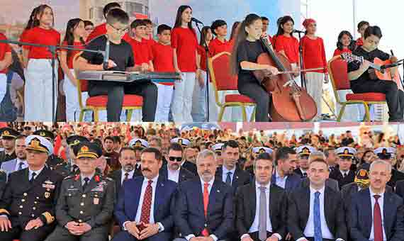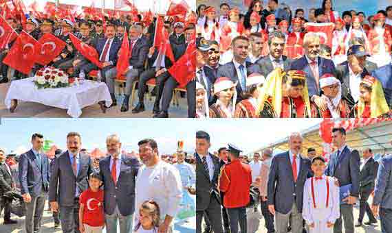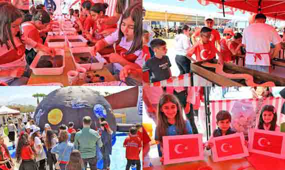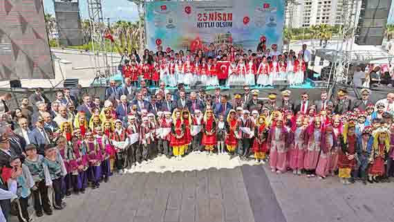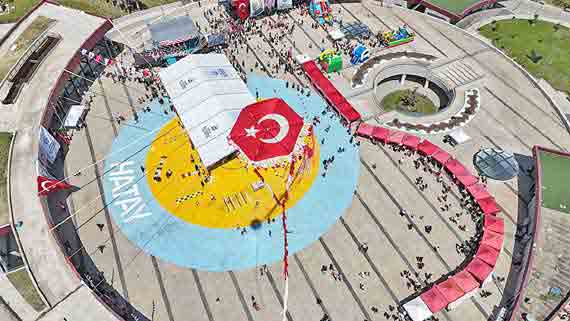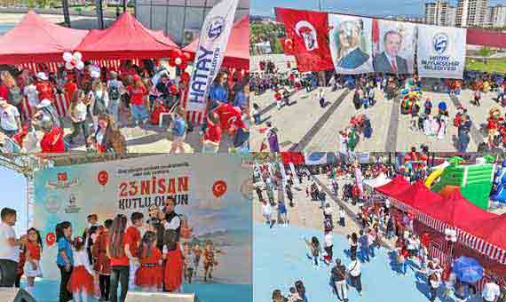 BAŞKAN ÖNTÜRK, 23 NİSAN’I ÇOCUKLARLA KUTLADIBAŞKAN ÖNTÜRK, 23 NİSAN’I ÇOCUKLARLA KUTLADI Hatay Büyükşehir Belediyesi (HBB) Başkanı Mehmet Öntürk, Arsuz EXPO Alanı’nda düzenlenen 23 Nisan Törenine katıldı. 23 Nisan Ulusal Egemenlik ve Çocuk Bayramı nedeniyle gerçekleştirilen törene Başkan Öntürk’ün yanı sıra Hatay Valisi Mustafa Masatlı, Arsuz Belediye Başkanı Sami Üstün, Hatay Milli Eğitim Müdürü Harun Tüysüz, Hatay Mustafa Kemal Üniversitesi Rektörü (HMKÜ) Veysel Eren ve il protokolü katıldı. Çocukların birbirinden anlamlı ve renkli gösterilerle süslediği törende Türkiye Büyük Millet Meclisi’nin açılışında emeği bulunan Mustafa Kemal Atatürk ve silah arkadaşları anıldı. Kutlama alanına gelen çocuklar ve ailelerine Türk Bayrağı dağıtılırken HBB animasyon ekibinin kukla gösterisi izleyenlere keyifli anlar yaşattı. Tören alanında oluşturulan şişme oyun alanında minikler doyasıya eğlendi ve günün en anlamlı etkinliği olan Türk Bayrağı uçurtması çocukların eliyle gökyüzüne yükseldi.